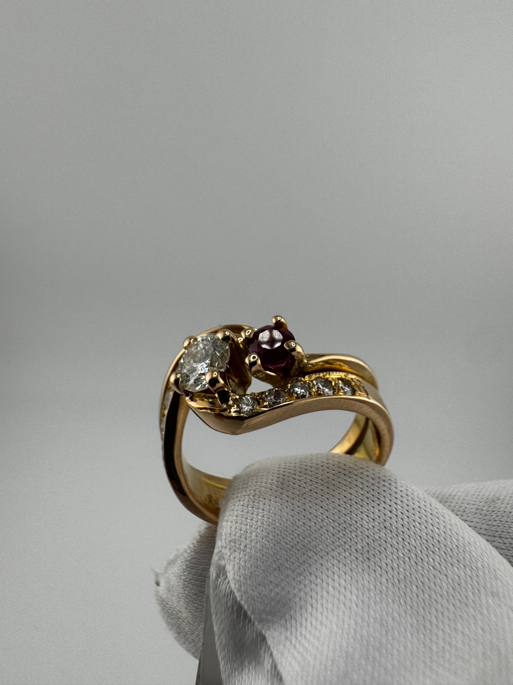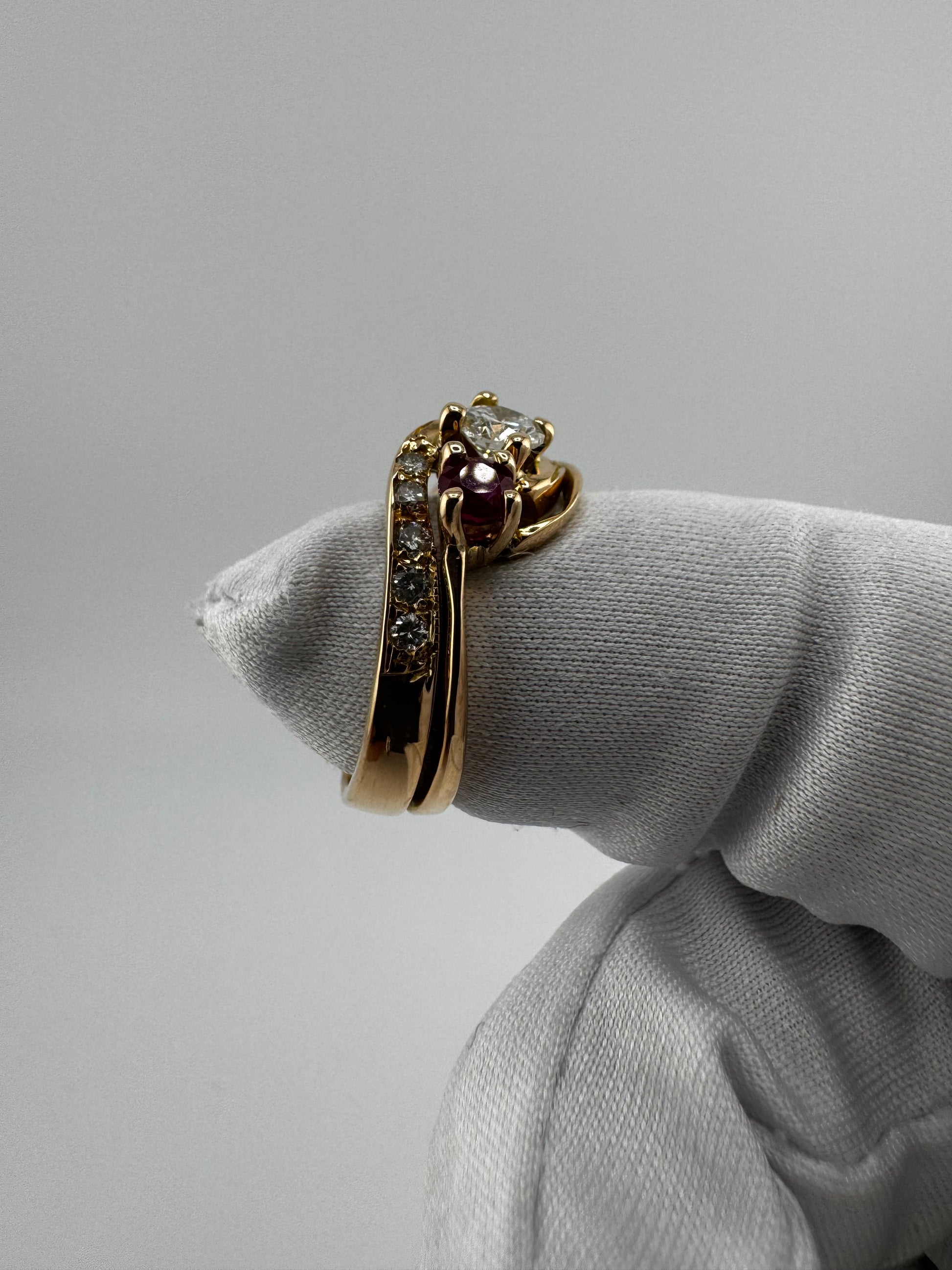 Expertly crafted pre loved from 14kt yellow gold, this .66cttw ring boasts natural diamonds and a stunning ruby. Add a touch of luxury to any outfit with this elegant and timeless piece. Perfect for any occasion and sure to impress.